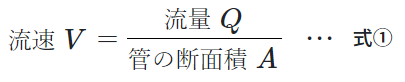 流速Vと流量Q、管の断面積Aとには、次の関係があります。